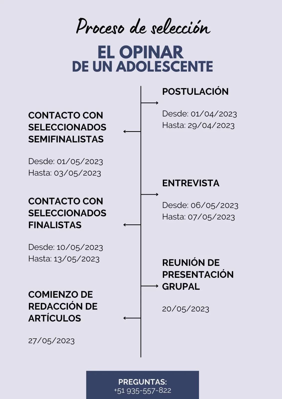 De tener consultas puedes comunicarte con nosotros a través de nuestro elopinardeunadolescente@gmail.com